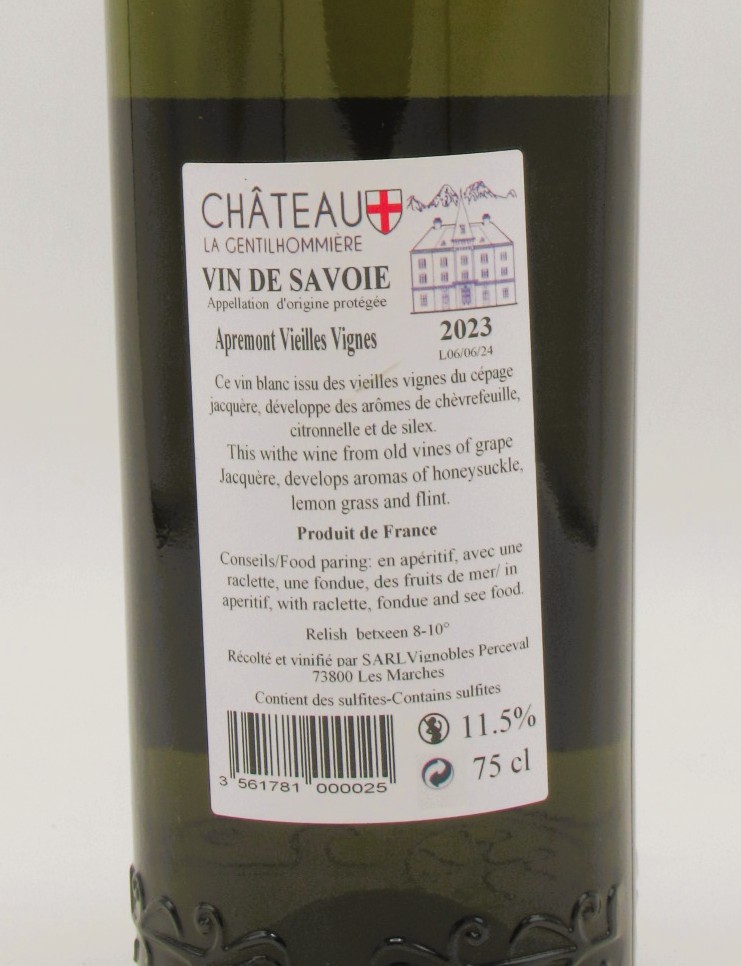 Le vin de Savoie Apremont Vieilles Vignes Chateau La Gentilhommière 2023 est composé de Jacquère.