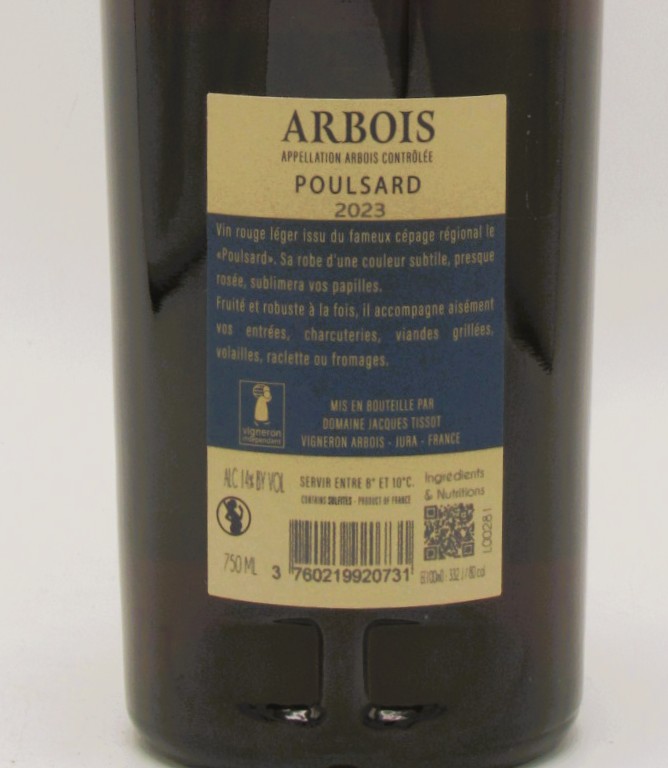 Le Jura Arbois Poulsard Domaine Jacques Tissot 2023   est composé de Poulsard à 100%.