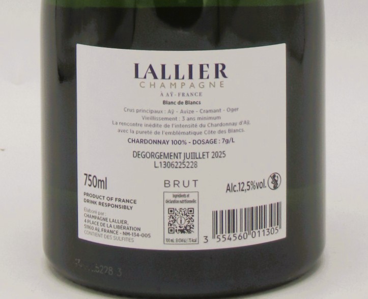 Le Champagne brut Blanc de Blancs Lallier est composé de Chardonnay.