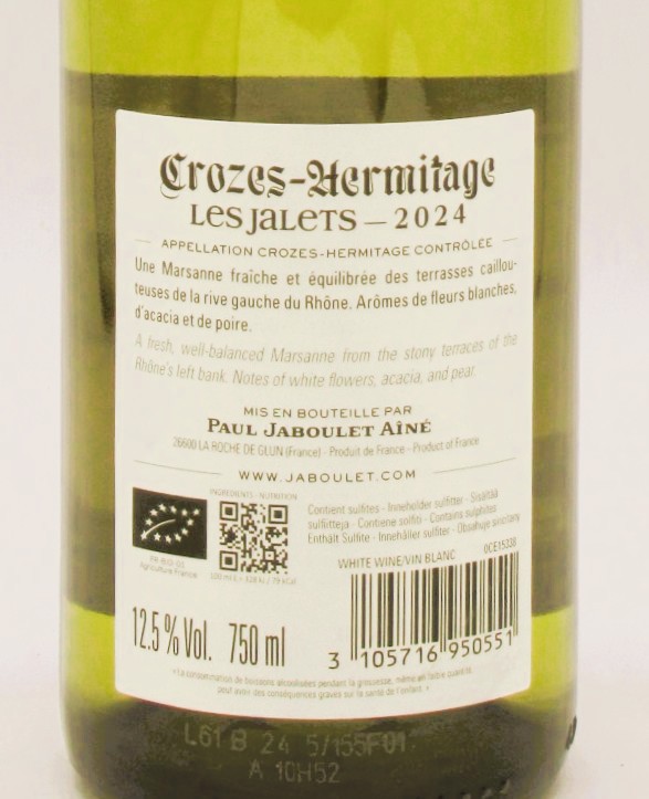 Crozes Hermitage bio Blanc Les Jalets Paul Jaboulet 2024