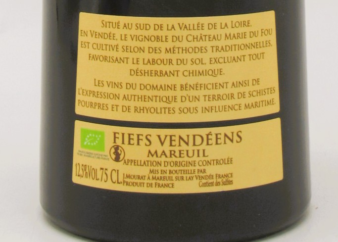 Fiefs Vendéens bio rouge Chateau Marie du Fou Vignobles Mourat 2024
