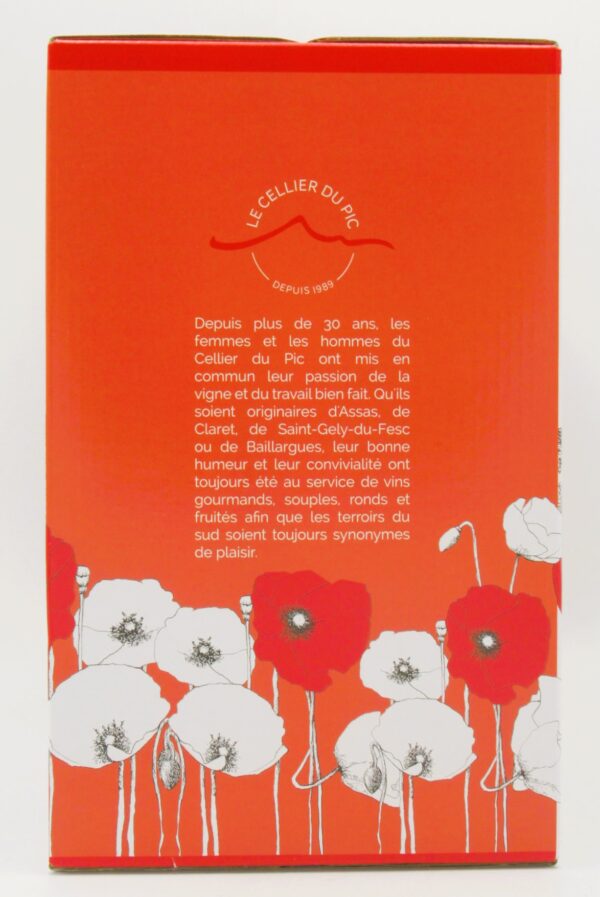 L’IGP Pays D’oc Merlot Cellier Du Pic 5 Litres est composé de Merlot à 100%.