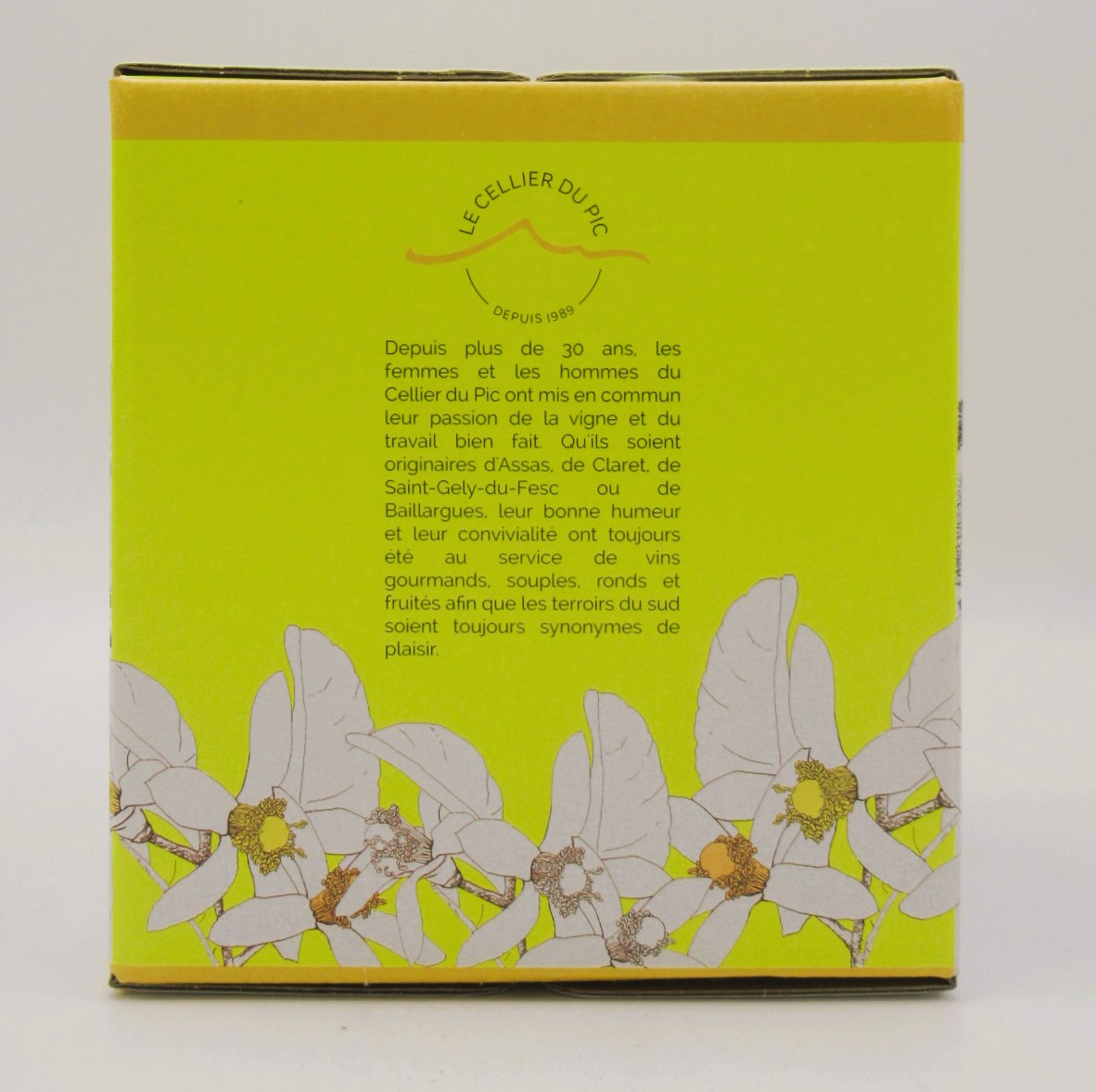 L’ IGP Pays d’Oc Viognier Cellier du Pic 3 litres est composé de Viognier à 100%