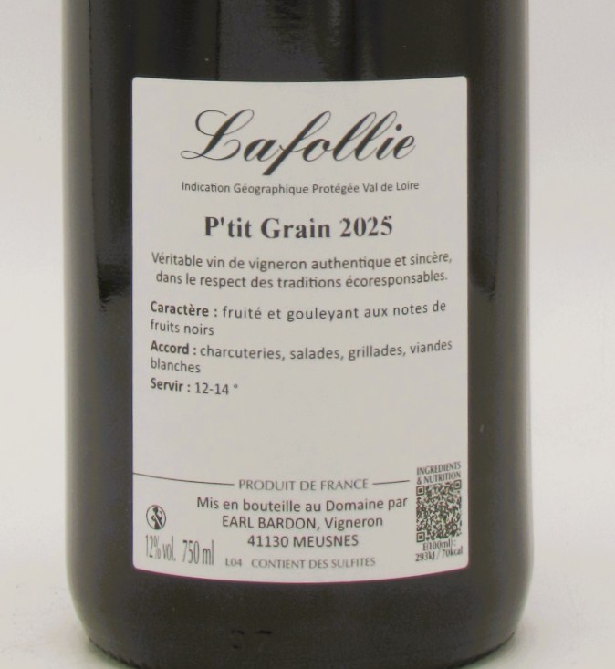 IGP Val de Loire P’tit Grain Lafollie Vignoble Denis Bardon 2025