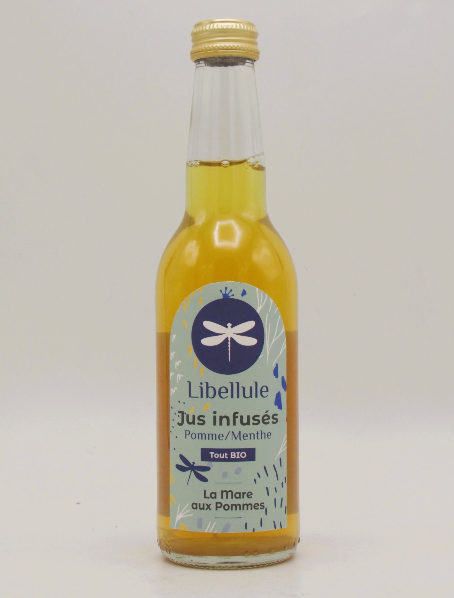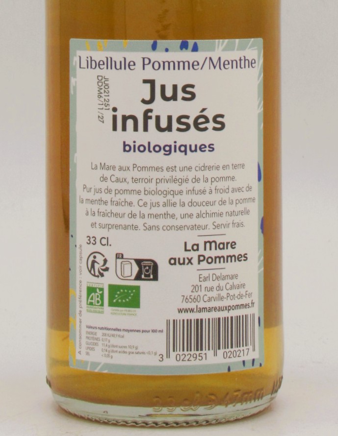 Le Jus Infusé Bio Libellule Pomme Menthe La Mare aux Pommes est à produit à Carville Pot de Fer, près d’Yvetot en plein Pays de Caux.