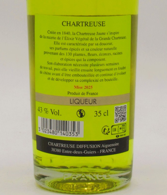 Créée en 1840, cette Liqueur Chartreuse Jaune 35cl s’inspire de la recette de l’Élixir Végétal. Elle connaît un tel engouement que le Père Garnier, procureur et responsable des liqueurs de l’époque, décide par la suite de la nommer officiellement Chartreuse Jaune et dépose la marque “Chartreuse” en 1852. C’est une liqueur titrant 43°, élaborée et fabriquée encore aujourd’hui par les Pères Chartreux.
