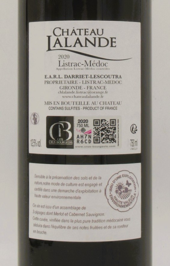 Listrac Médoc Cru Bourgeois Château Lalande 2020