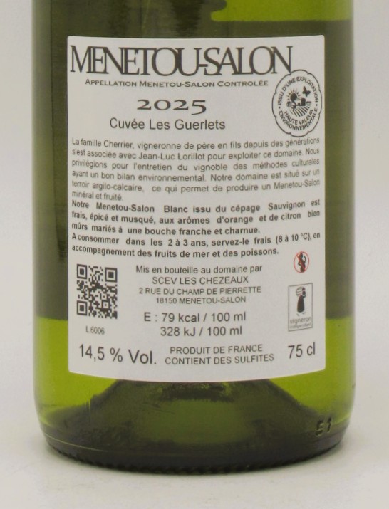 Robe : Menetou Salon Blanc Les Guerlets Domaine Cherrier 2025