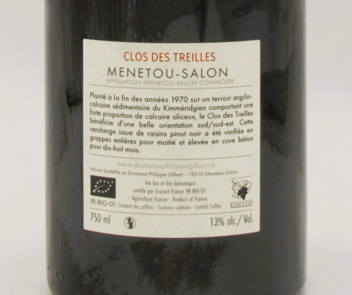 Menetou Salon rouge bio Clos des Treilles Domaine Philippe Gilbert 2022