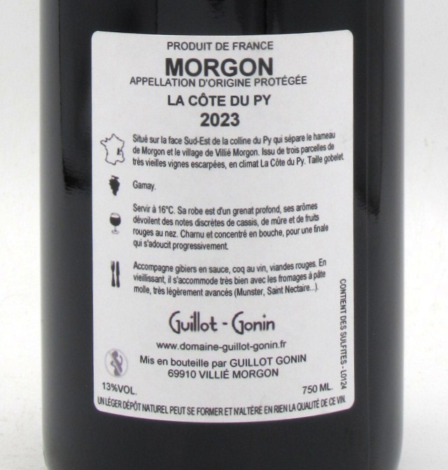 Le Morgon Cote du Py Domaine Jean Philippe Guillot – Gonin 2023 est composé de Gamay.