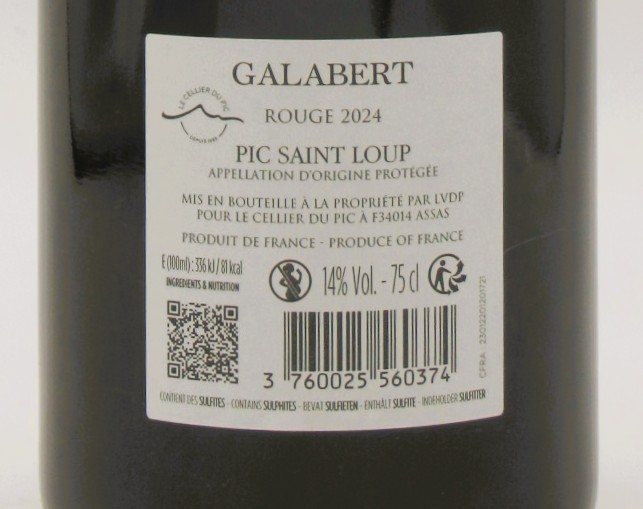 Le Pic Saint Loup Galabert 2024 est composé de 50% de Syrah et 50% de Grenache.
