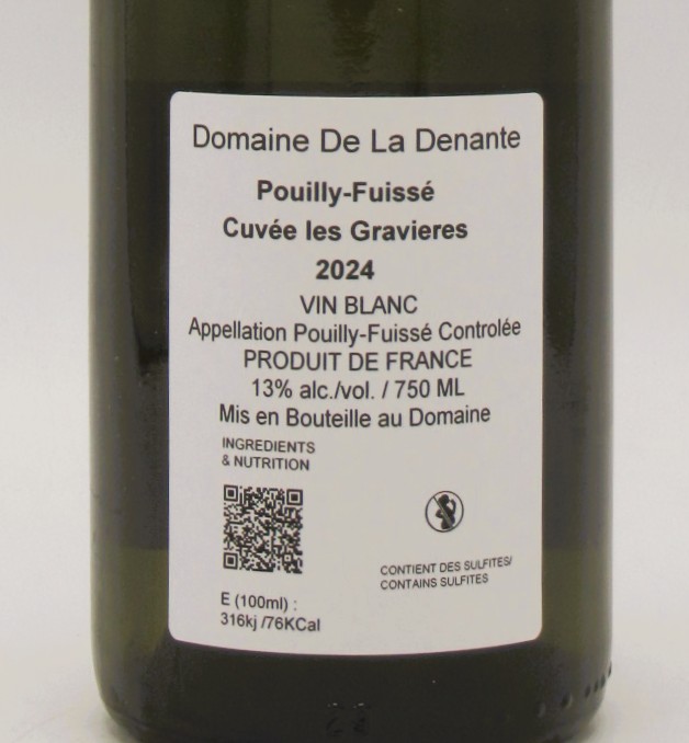 Le Pouilly Fuissé Les Gravières Domaine La Denante 2024 est composé de 100% de Chardonnay.