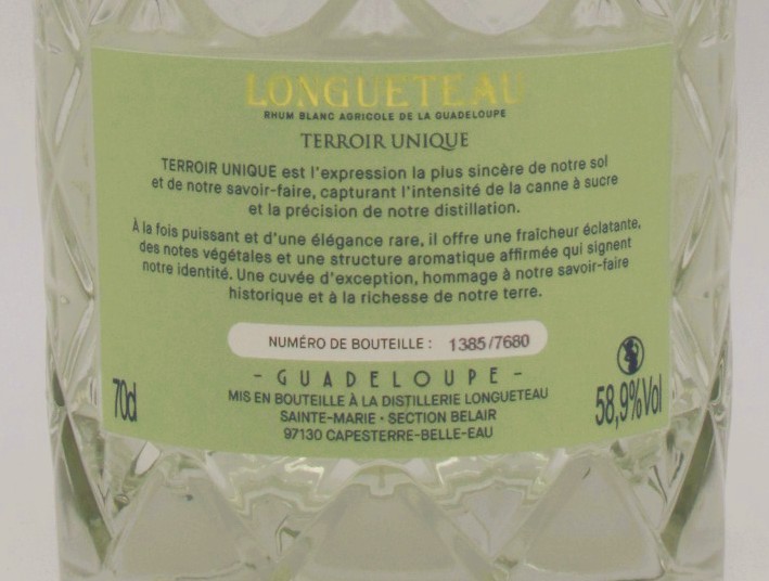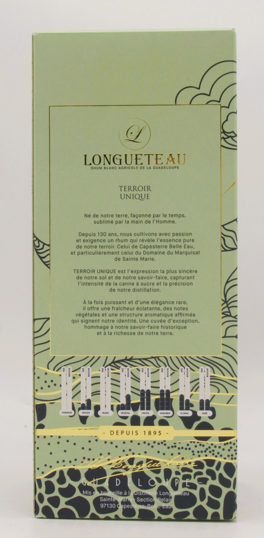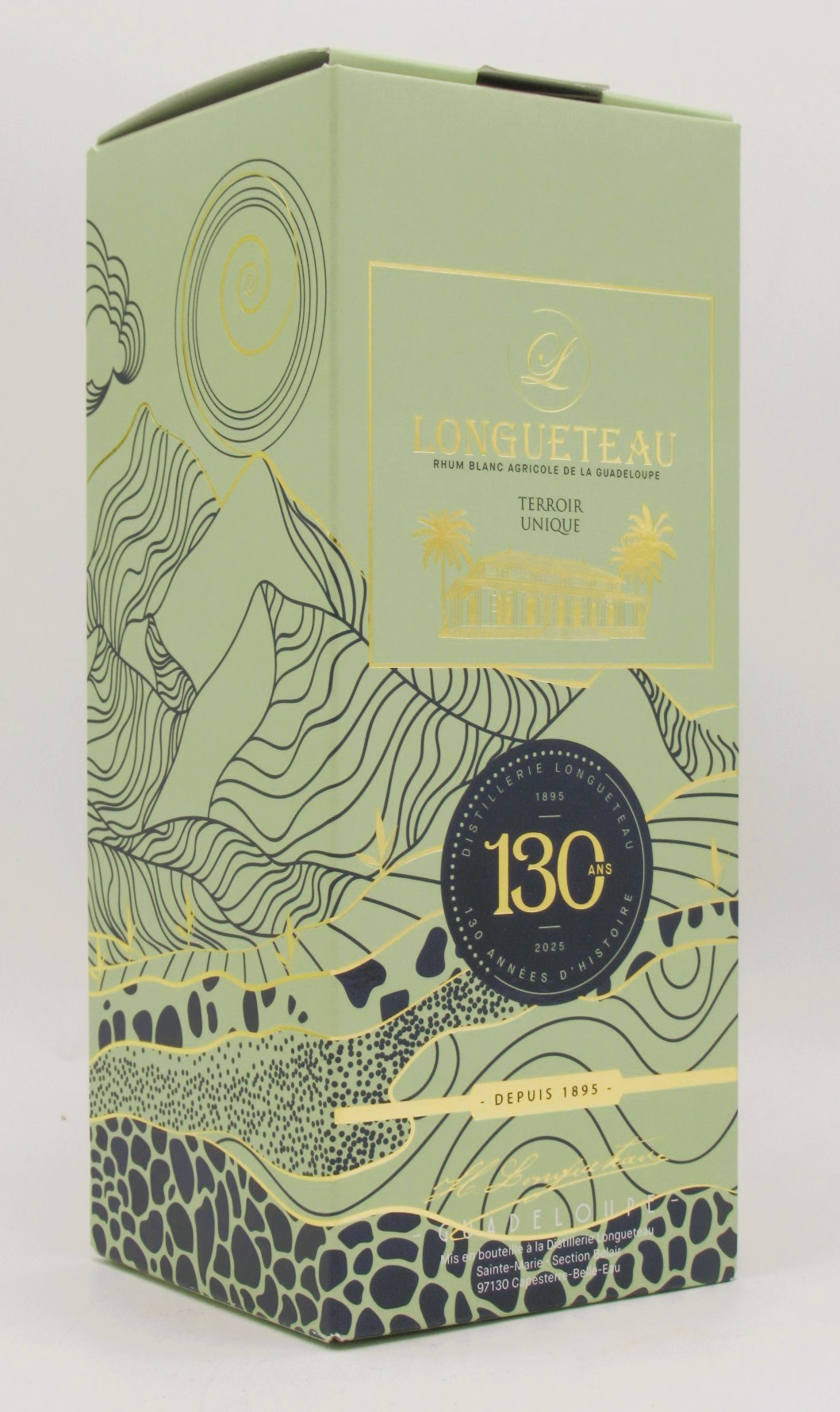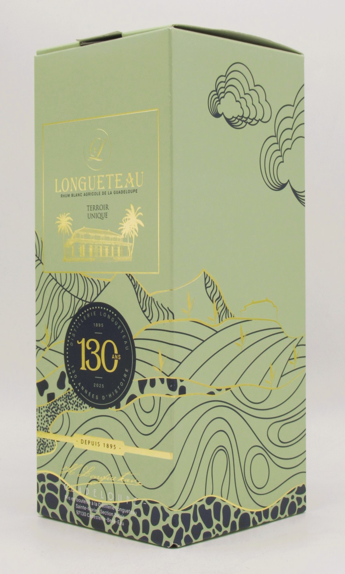 Le Rhum Blanc Longueteau Terroir Unique 130 ans est une Cuvée Edition Limitée marquant les 130 ans de la Distillerie de Guadeloupe Longueteau. Une Cuvée existe aussi en Rhum Vieux. Elle diffère des traditionnelles parcellaires par un assemblage de 2 millésimes.