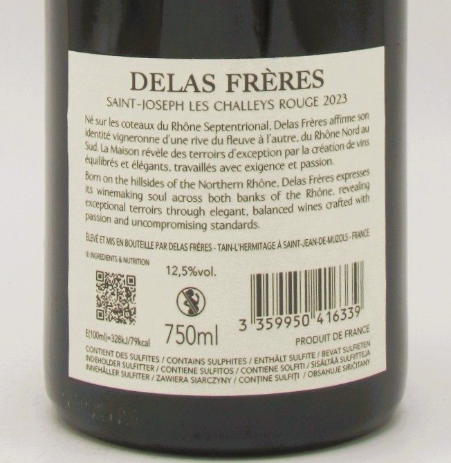 Le Saint Joseph Rouge Les Challeys Maison Delas 2023 est composé de Syrah.