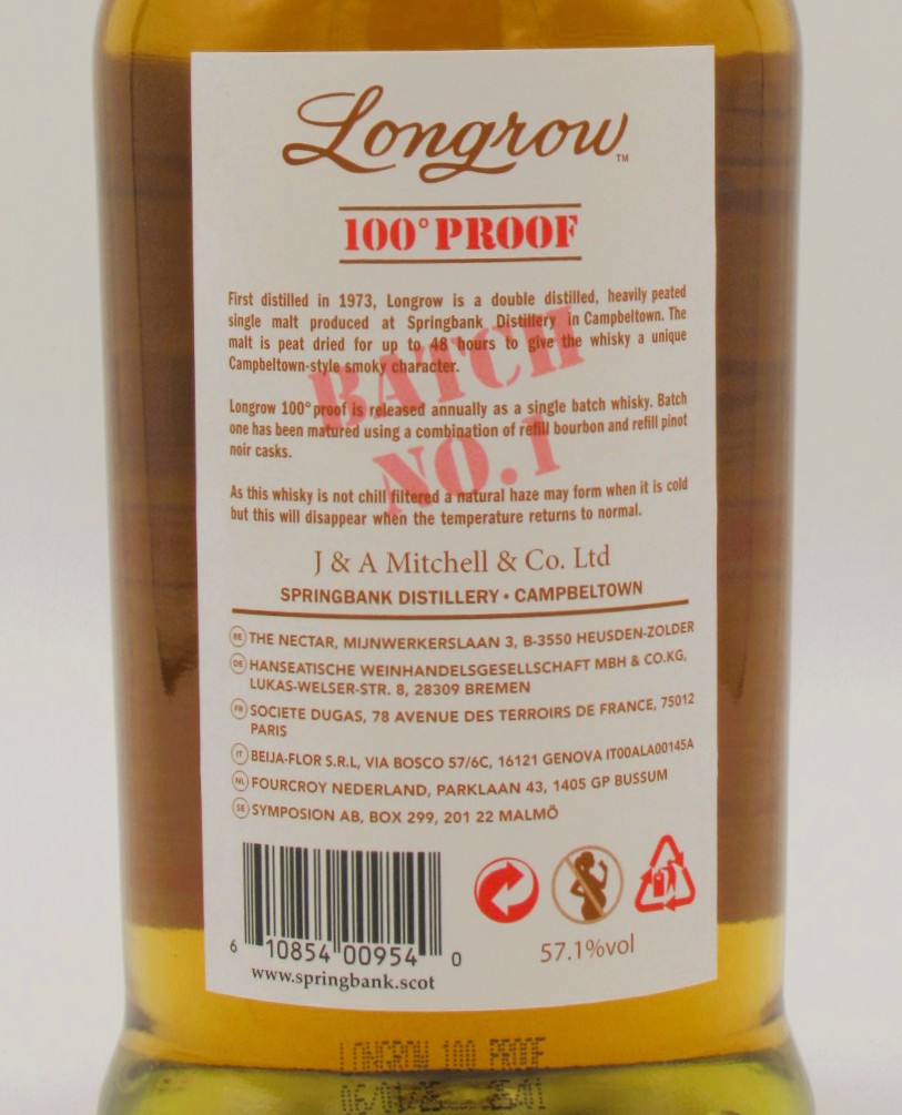 Le Single Malt Scotch Whisky Longrow 100 Proof 57.1° est la dernière nouveauté dans la gamme, et source d’une pointe de nostalgie, le Longrow 100 Proof témoigne de l’appréciation de ce style de whisky issu de la distillerie Springbank.