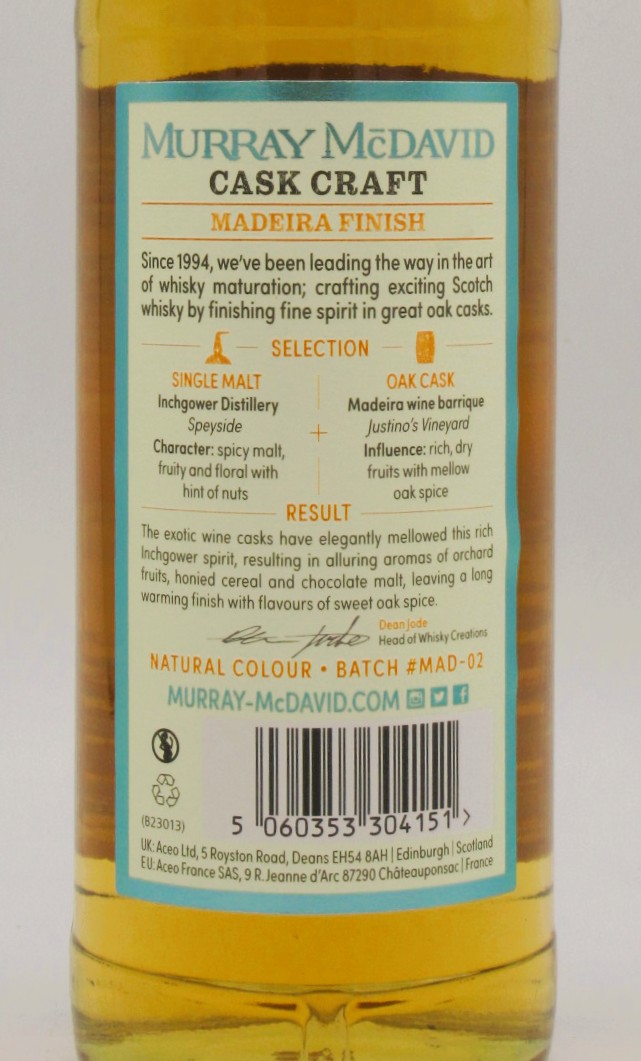Ce Single Malt Whisky Inchgower Distillery Madeira Finish Murray Mc David , a été vieilli en ex-fût de Madère du domaine Justino’s Vineyard.