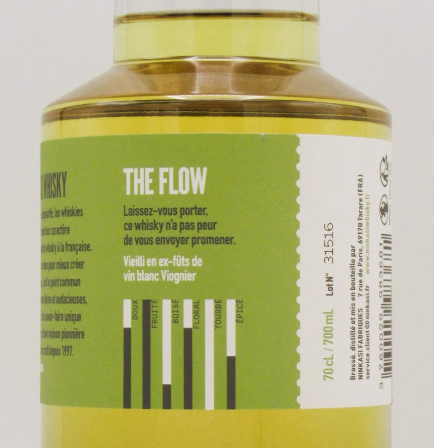 Avec le Single Malt Whisky Ninkasi The Flow, laissez-vous porter, ce whisky n’a pas peur de vous envoyer promener ! Floralfrais, mais avec du caractère, il démarre avec un nez où le chèvrefeuille et le raisin blanc jouent les premiers rôles. Puis, une touche gourmande s’invite : le flan pâtissier et la vanille viennent arrondir l’ensemble.