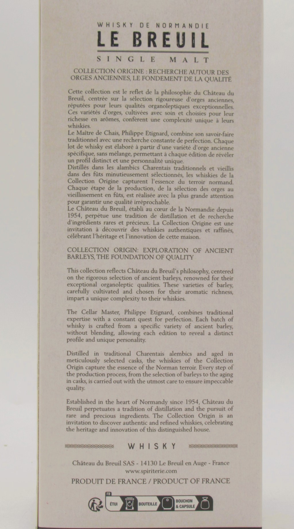Distillation & Elevage : Le Château du Breuil a décidé de donner naissance aux Single Malts du Château du Breuil, une gamme de whiskies fruit d’un savoir-faire d’exception en matière d’assemblage et une véritable maîtrise de la distillation.