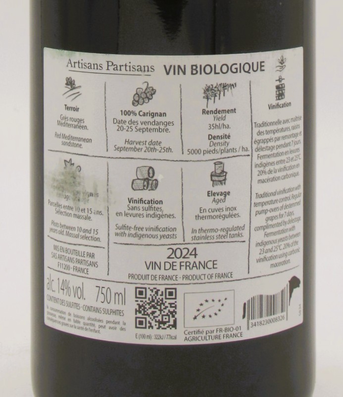 Le Vin de France bio La vie en Vert 100% Carignan Chateau Ollieux Romanis 2024 est composé de Carignan à 100% du Chateau Ollieux Romanis. Cette cuvée est sans sulfite ajouté.