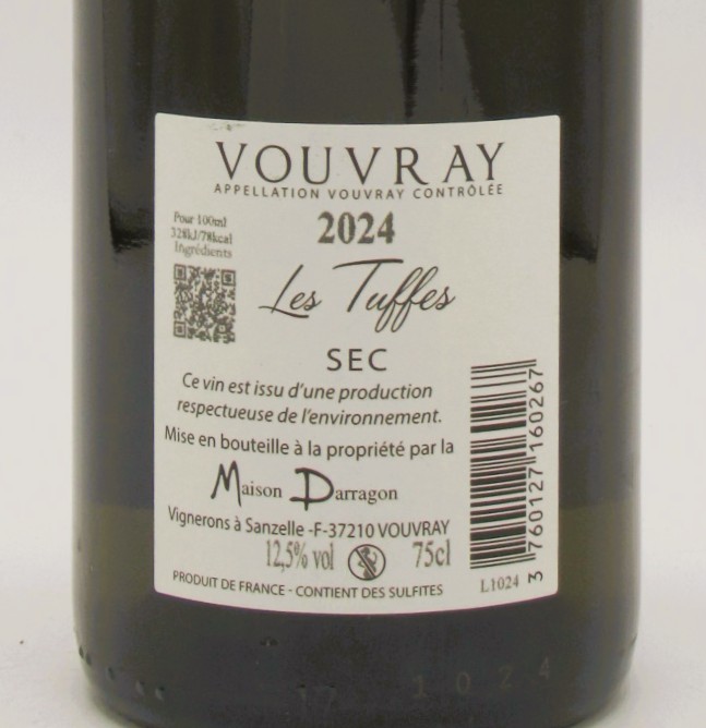 Le Vouvray Sec Les Tuffes Domaine Darragon 2024 est composé de Chenin.
